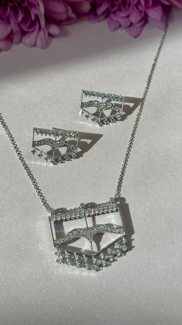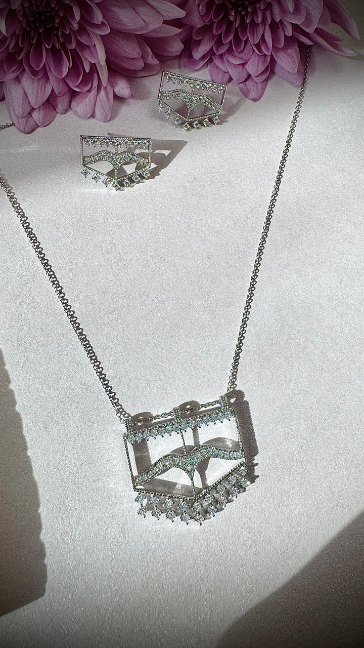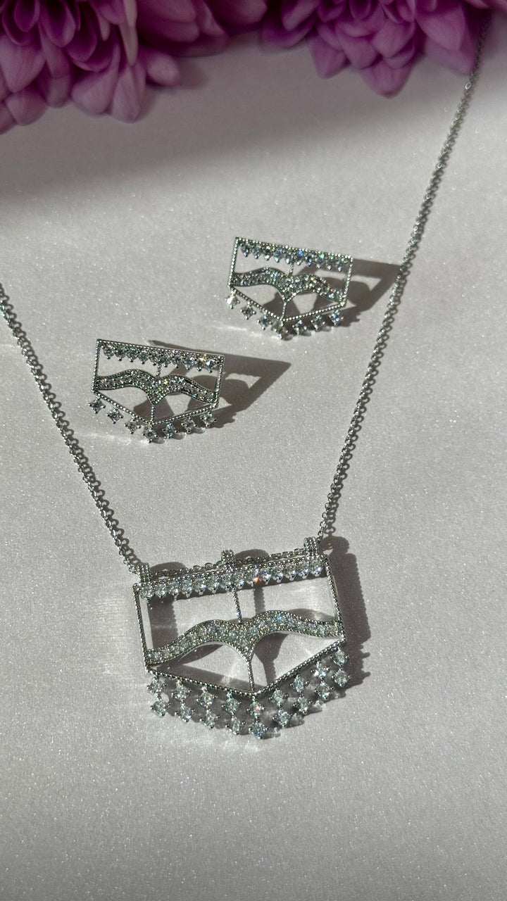 Add a touch of timeless elegance to your collection with this stunning gold-plated necklace and earring set. Expertly crafted with high-quality zircon stones, the set features a unique fan-shaped design that captures the light beautifully, offering a sophisticated sparkle with every movement.
