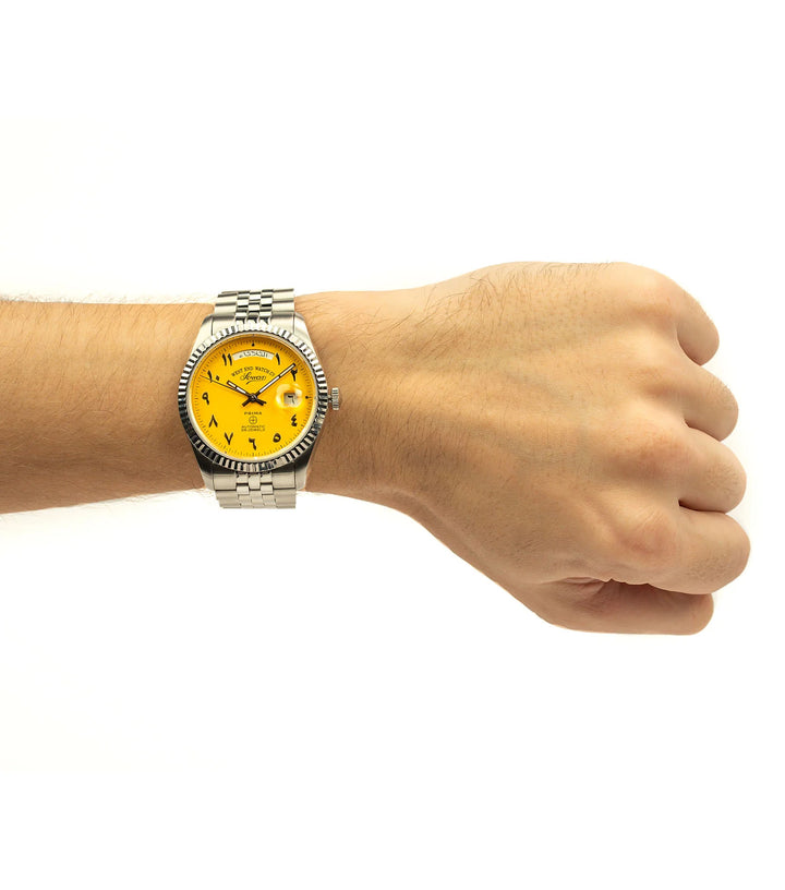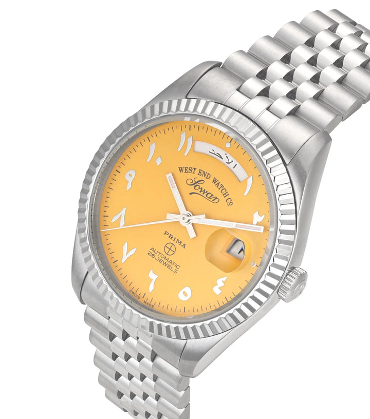 Case size: 41mm Dial Colour: Yellow Strap Colour: Silver Brand Name: WEST END Case Colour: Silver Case Shape: Round Case material: Stainless Steel Strap material: Stainless Steel Movement: Automatic