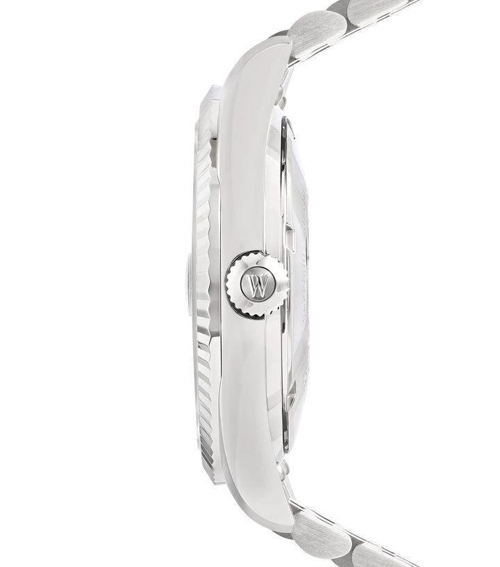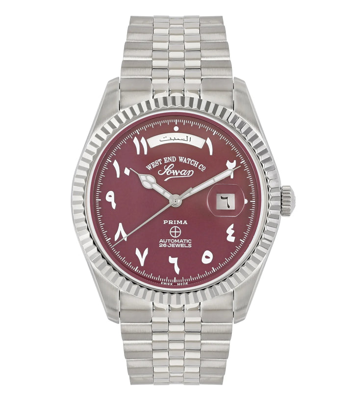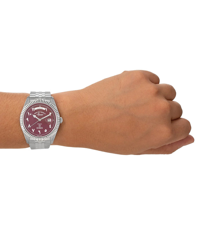 Size: 41mm Dial Colour: Maroon Strap Colour: Silver Brand Name: West End Gender: Men Case Colour: Silver Case Shape: Round Case size: 41mm Case material: Stainless Steel