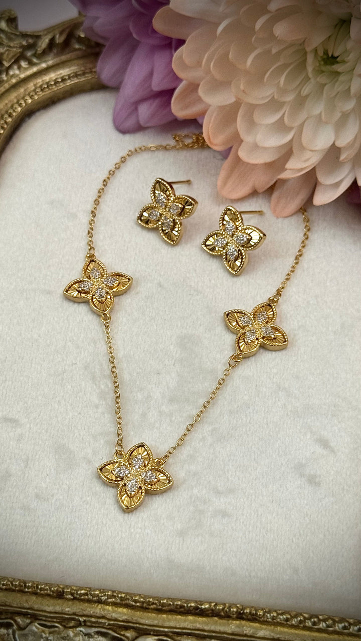 Elegant Gold-Plated Zircon Necklace & Earring Set