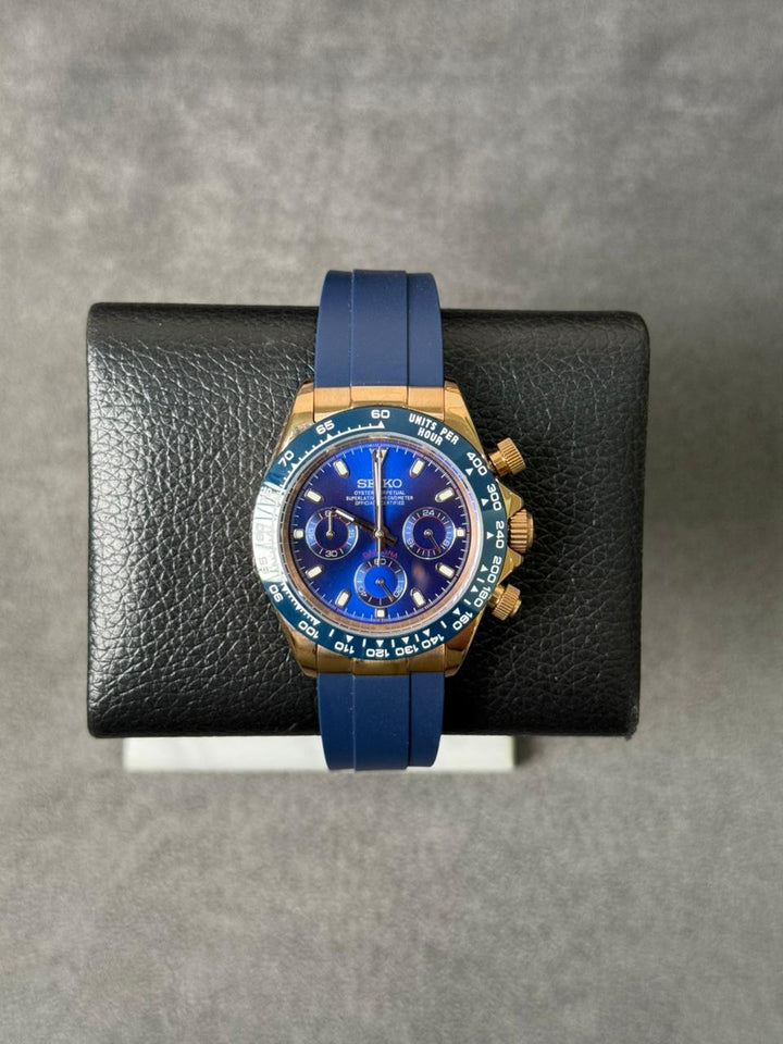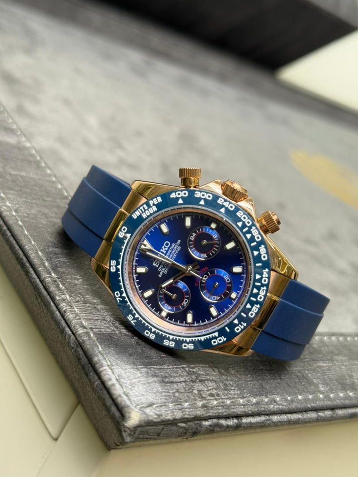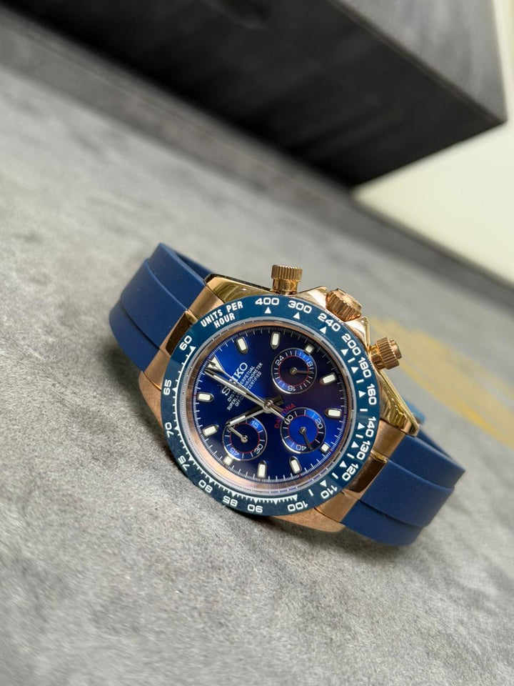 Striking Blue Dial: Features a bold and vibrant blue dial with crisp chronograph subdials for precise time tracking.