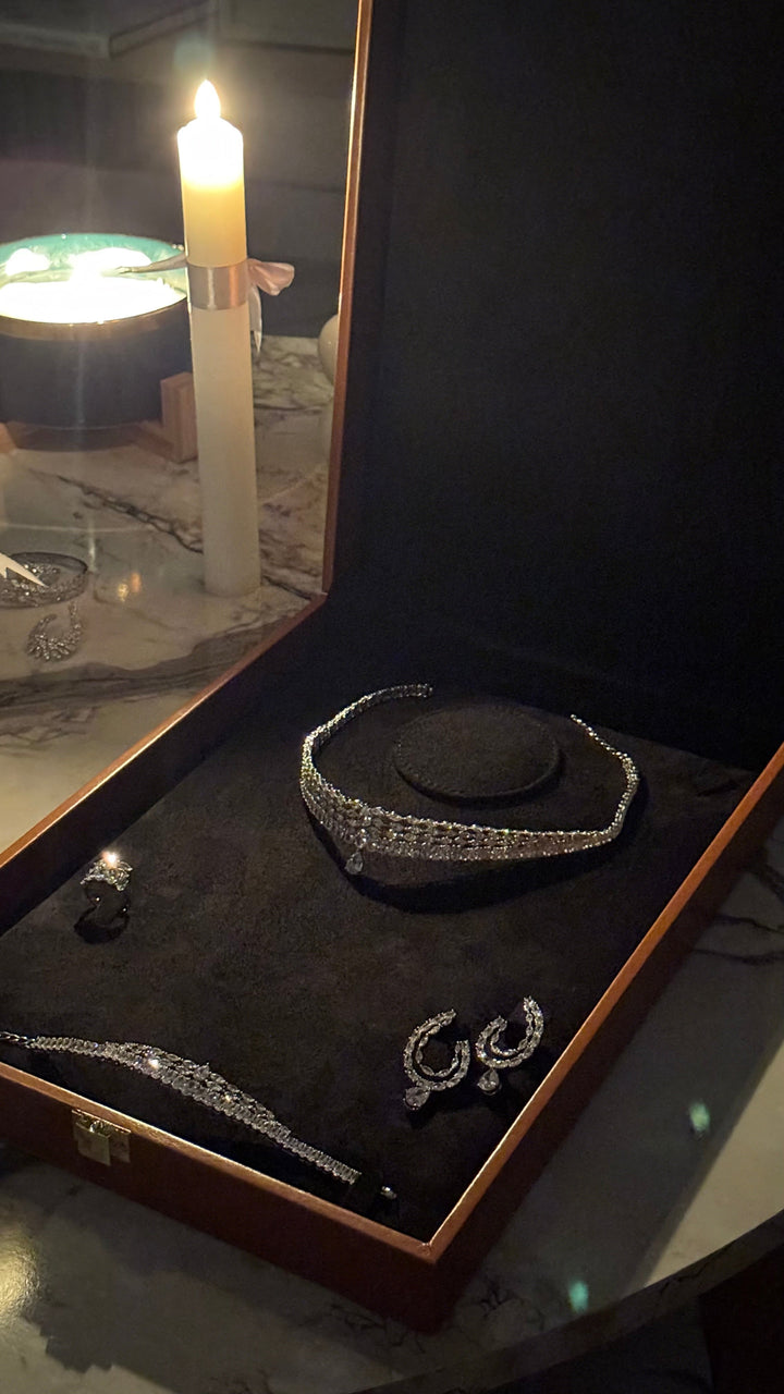 Whether you’re walking down the aisle or celebrating love in a grand event, the “Royal” set ensures you shine with confidence, class, and sparkle.