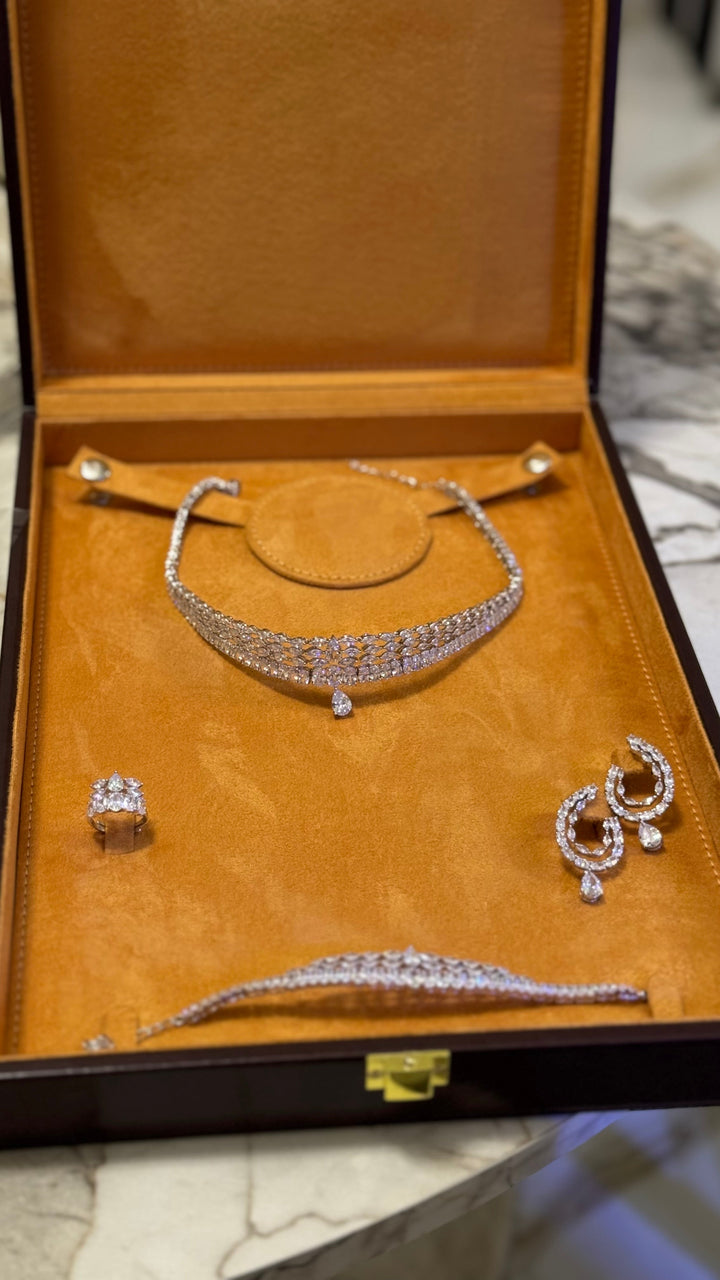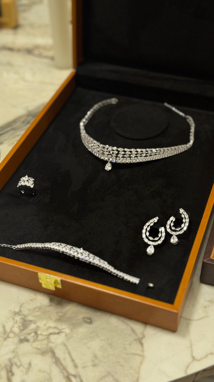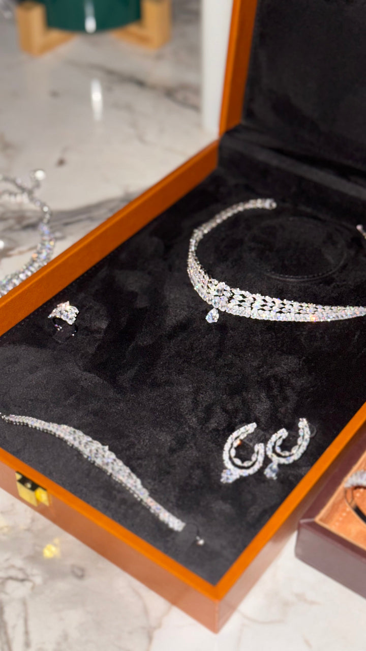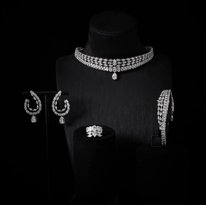 Crafted for the modern bride who desires sophistication without compromise, this complete zircon set includes a