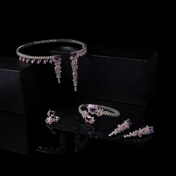Introducing the Valencia Set — where romance meets regal beauty. This 4-piece bridal collection includes a refined necklace, elegant bracelet, sparkling earrings, and a graceful ring, all crafted with high-quality...